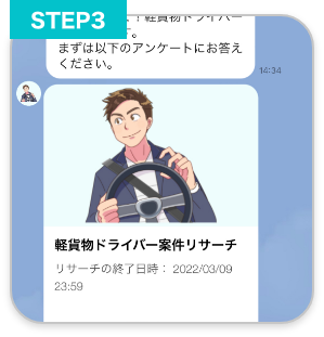当てはまるものを選択しアンケート回答後に案件紹介を待つ。